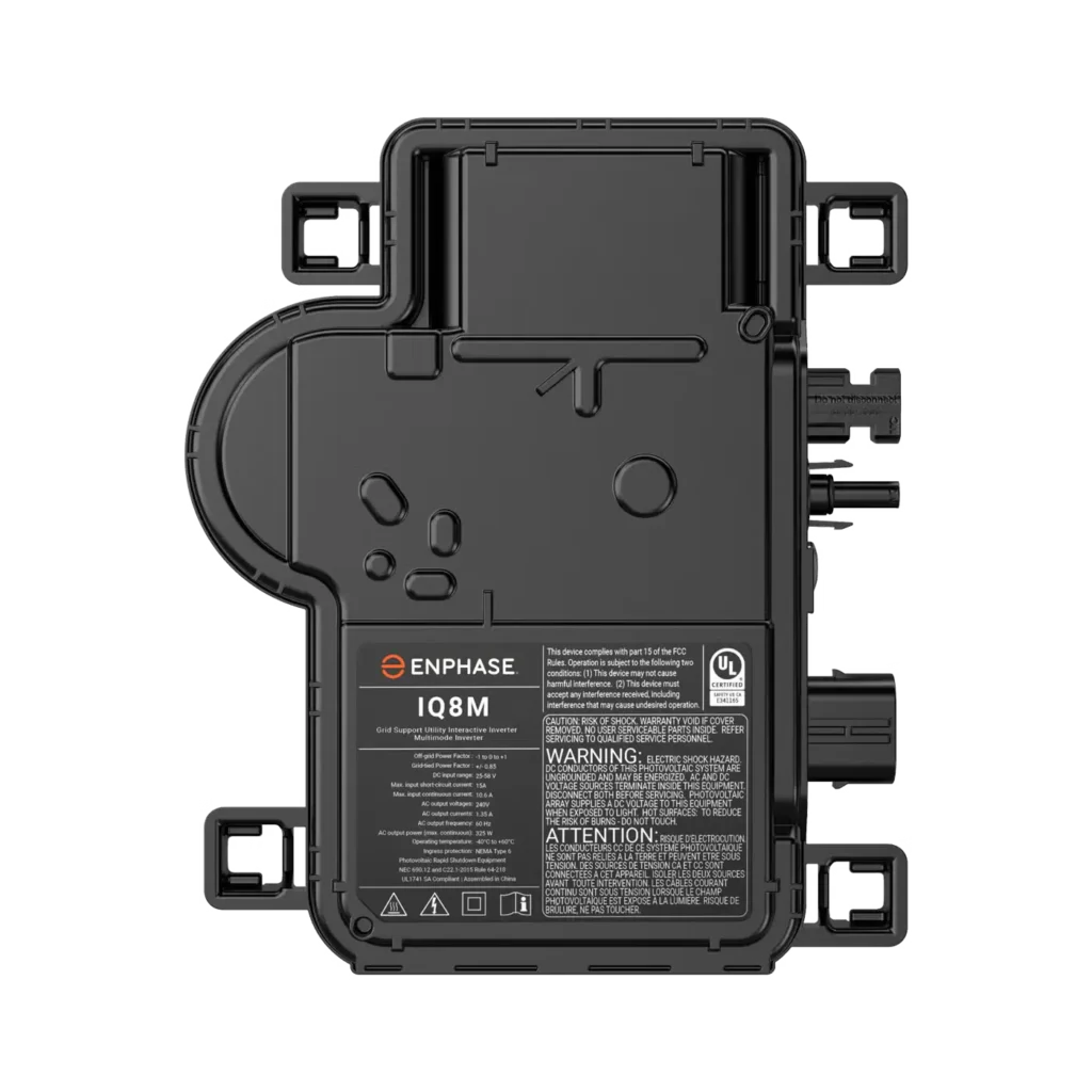 Le micro-onduleur Enphase IQ8M est un convertisseur installé directement sous chaque panneau.